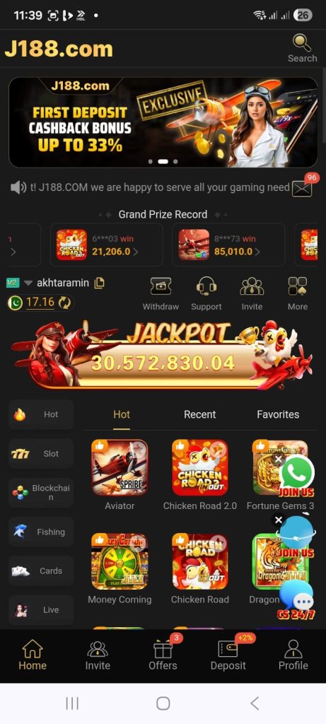The J188 Game has impressed its users with its offers. Here, the players can easily win and earn money. The game has slots and Aviator, where you can get a huge amount of money easily and quickly. This app provides instant deposit and withdrawal of your cash. The game is safe and secure for everyone. It has a simple interface, which is easy to understand.